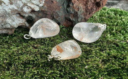 Mooie verhitte Bergkristal = Iriskwarts knuffelstenen.